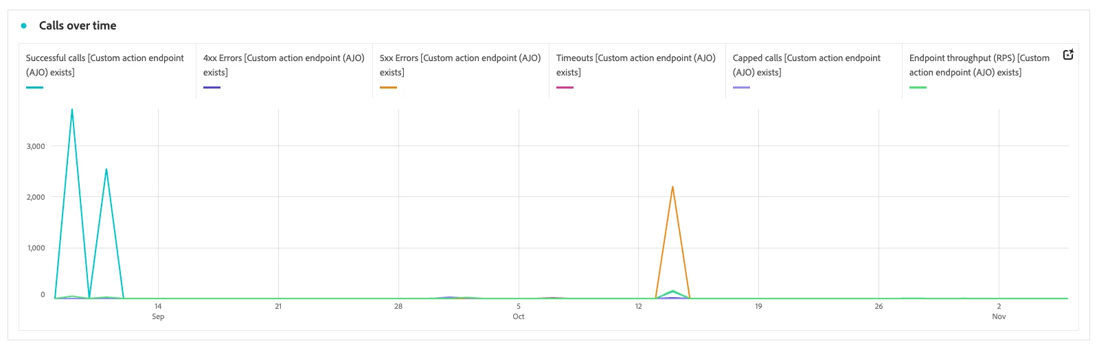 Successful Calls: Reflects the volume of custom actions that completed without error.