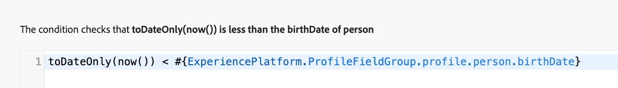 I'm trying to use a Filter Expression as a Journey Condition in Adobe Journey Optimizer. I want to compare now() (or nowWithDelta()) with a profile date field, like this (anonymized paths):