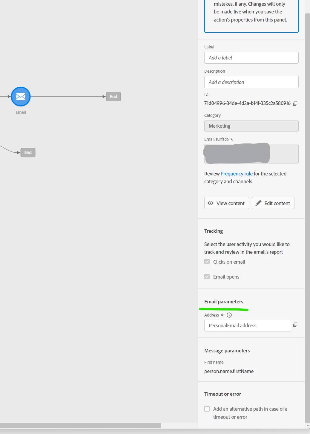 - Go to the Journey Optimizer console and open the Email activity that you want to associate the subscription list with.