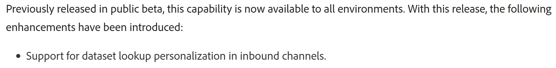 @alexandresa8 Per the release notes, dataset lookup should be available in inbound channels. Kindly log a support ticket with the error details. https://experienceleague.adobe.com/en/docs/journey-optimizer/using/whats-new/release-notes