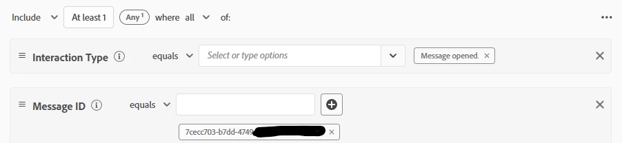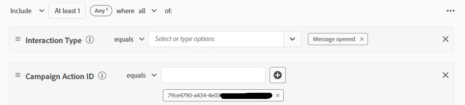 I created these two audiences to be used in an AJO campaign to target people who opened a specific email.