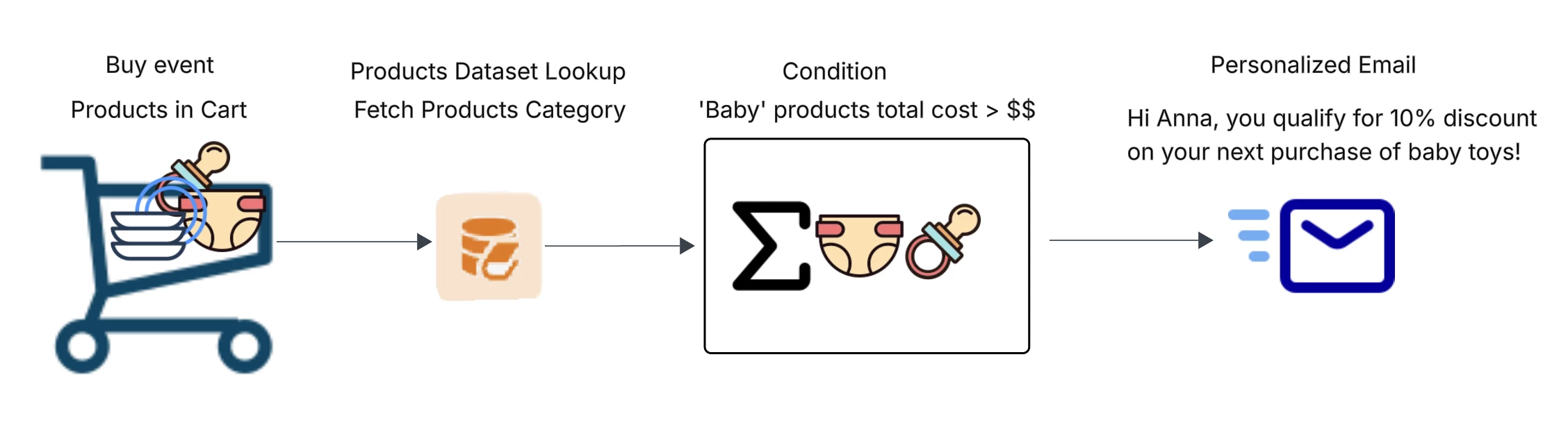 Custom actions: e.g., triggering coupon delivery.