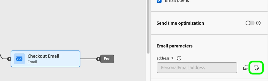 - Scroll down to find the Email Parameters > Address field, which you’ll need to edit. By default, this field will be locked. Click the Edit icon to unlock it. Then click on the field to open a window to edit it.