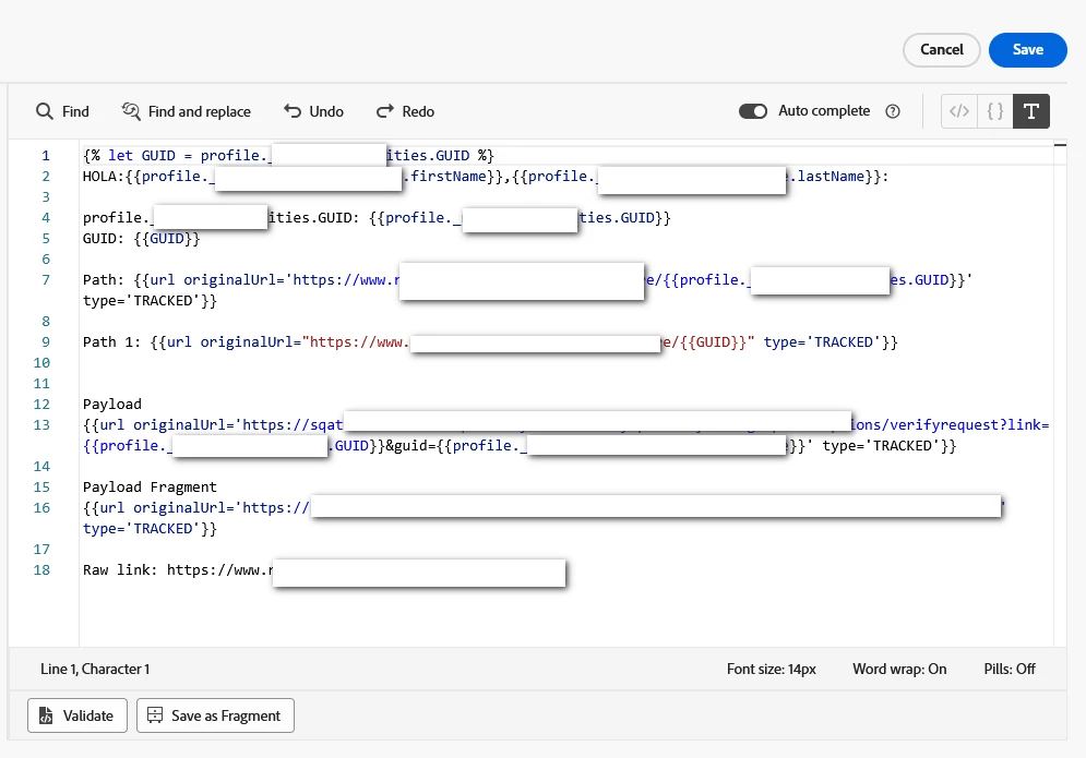 ERROR Personalization not allowed in domain name. context.journey.events.1209875484._floridapowerandlight.journey.url1. Error beginning at position: Line 1, Character 3