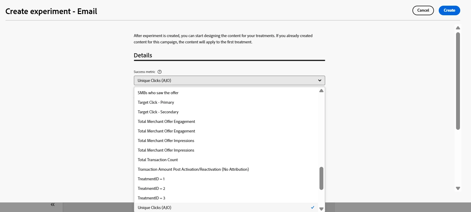 The success metric relies on the Reporting and data configuration settings (under Configurations -> Reporting). Provided that the prerequisites outlined in the documentation are met, you will be able to select a success metric based on your event schema and dataset.