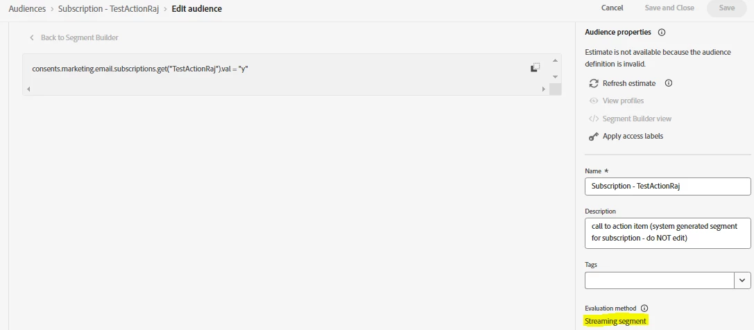 Hi Everyone, we can create the subscription list which will automatically comes to audience list. When we see that audience, we can see streaming segment. Will that comes under 500 guardrail limit. please find the below sample screenshot for the same.