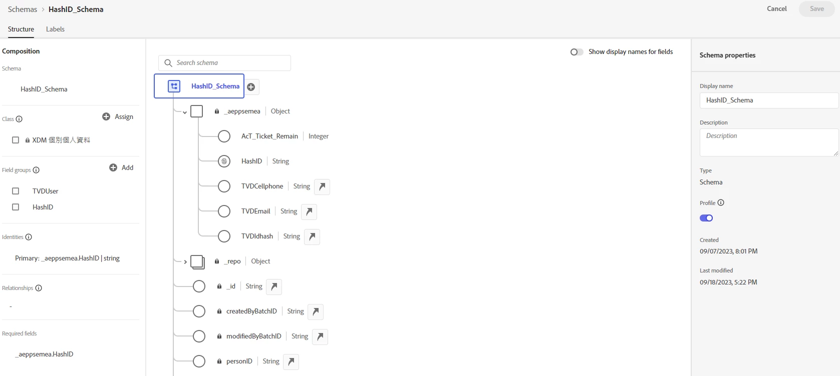 Schema and Dataset Profiles are enabled.