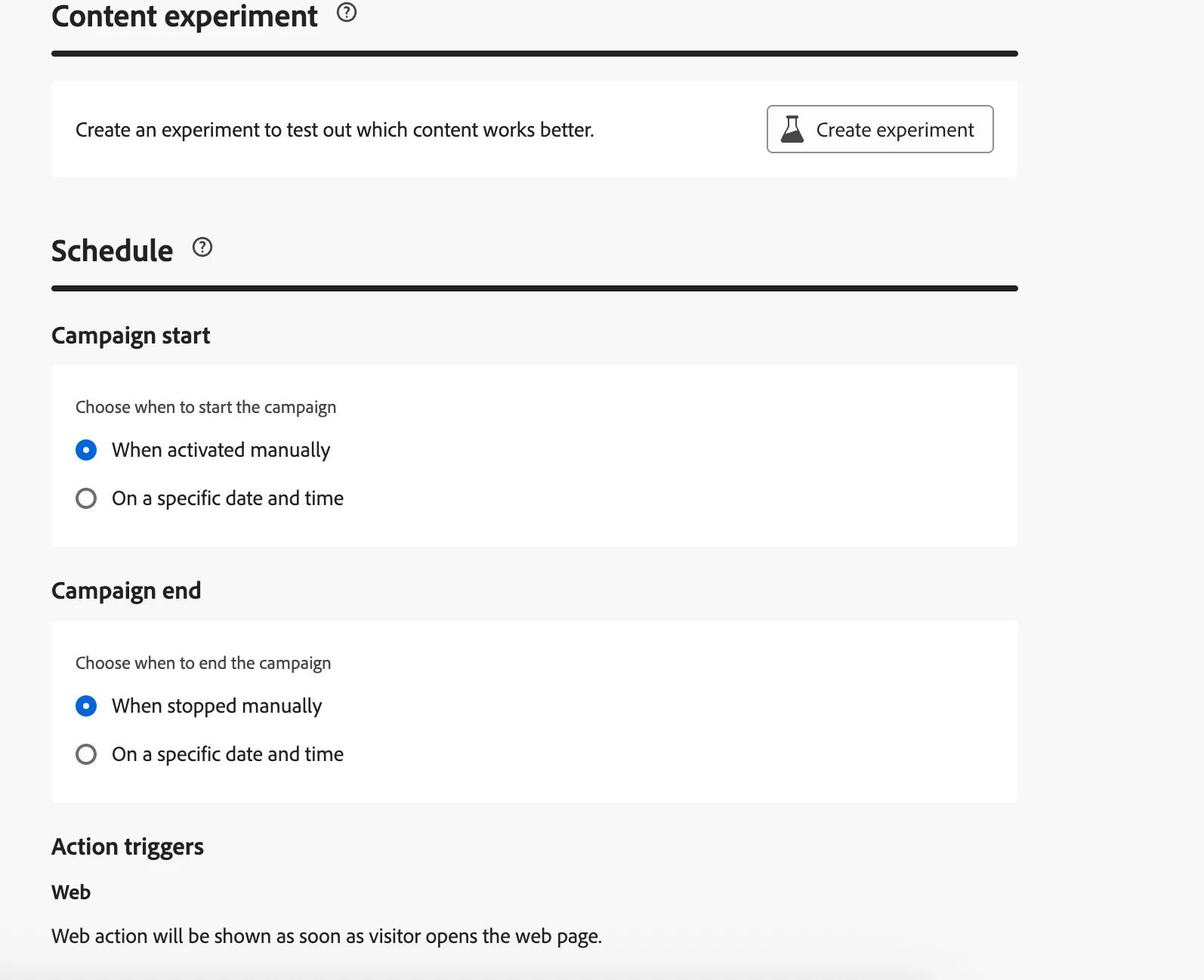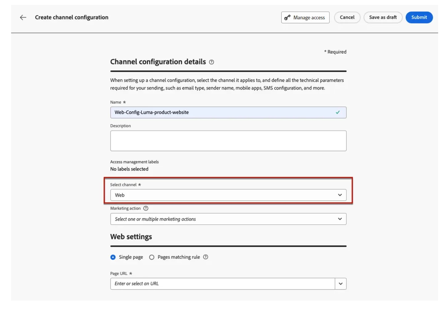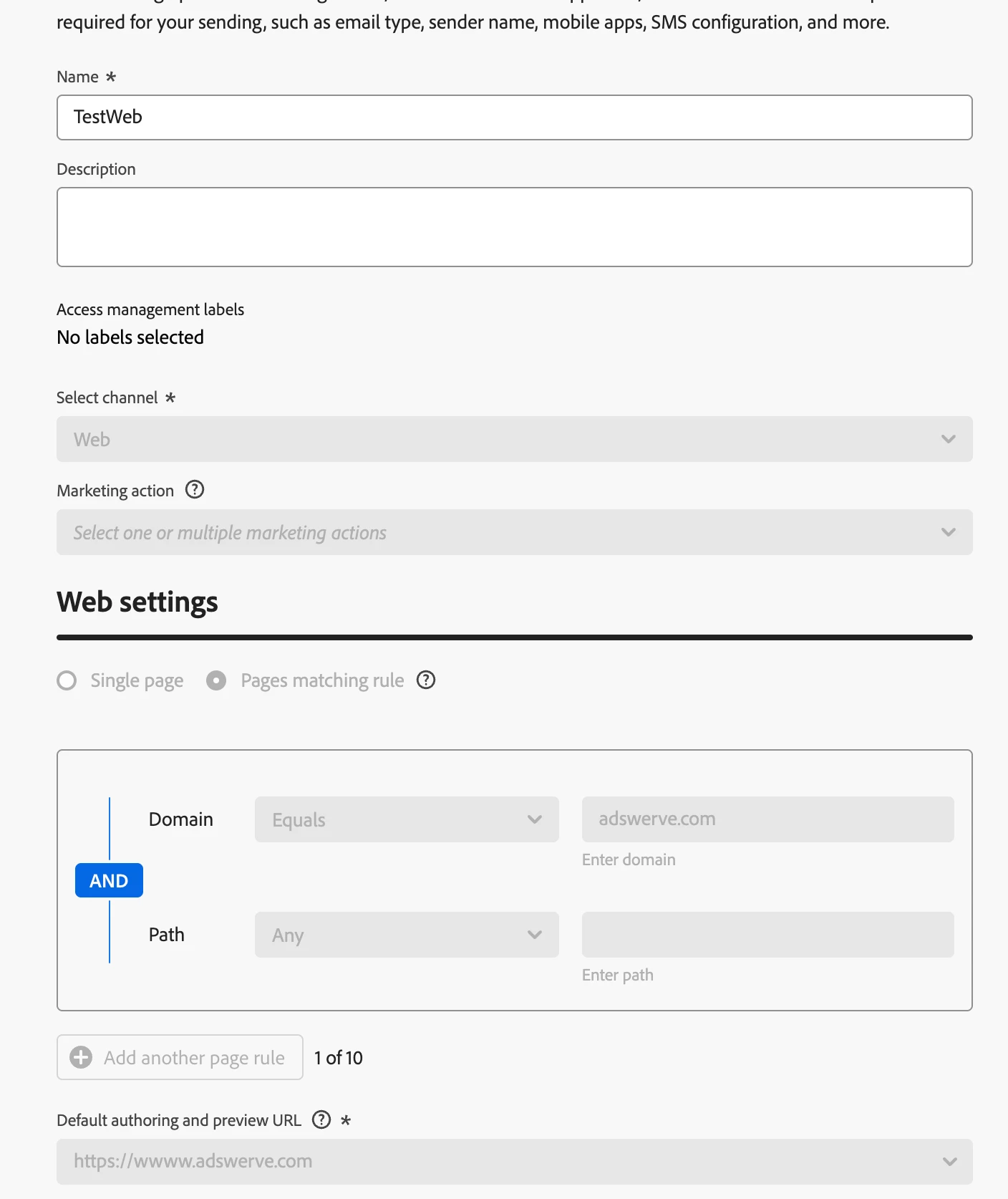 Hey! I'm building out a Campaign to run on my Web Channel, but can't set it to run on a specific URL, so it's going to run on every single page on the site. Alternatively I could create a Channel specific to the page I want it to run on, but that would mean a new channel for every page on my site, so we're going to end up with thousands of channels. Per 1:35 in [this video] in the documentation, I can set the URL, however that interface does not show for me. How do I set it to run on a specific URL? Screenshots attached for what my interface looks like when setting up Channel and Campaign.