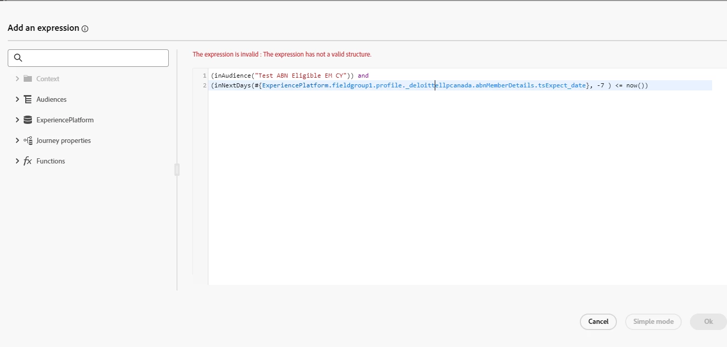 @chrisyan function InNextDays returns a boolean value and you are comparing it to now() which is a datetime. The error is because of it.