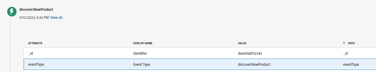 @michael_soprano This looks like discover.newProduct custom event. Ensure you're using the appropriate schema containing the custom event and that it is enabled in the event configuration fields section. Also, check under _pwcglobptrsd if that custom event is showing or not.