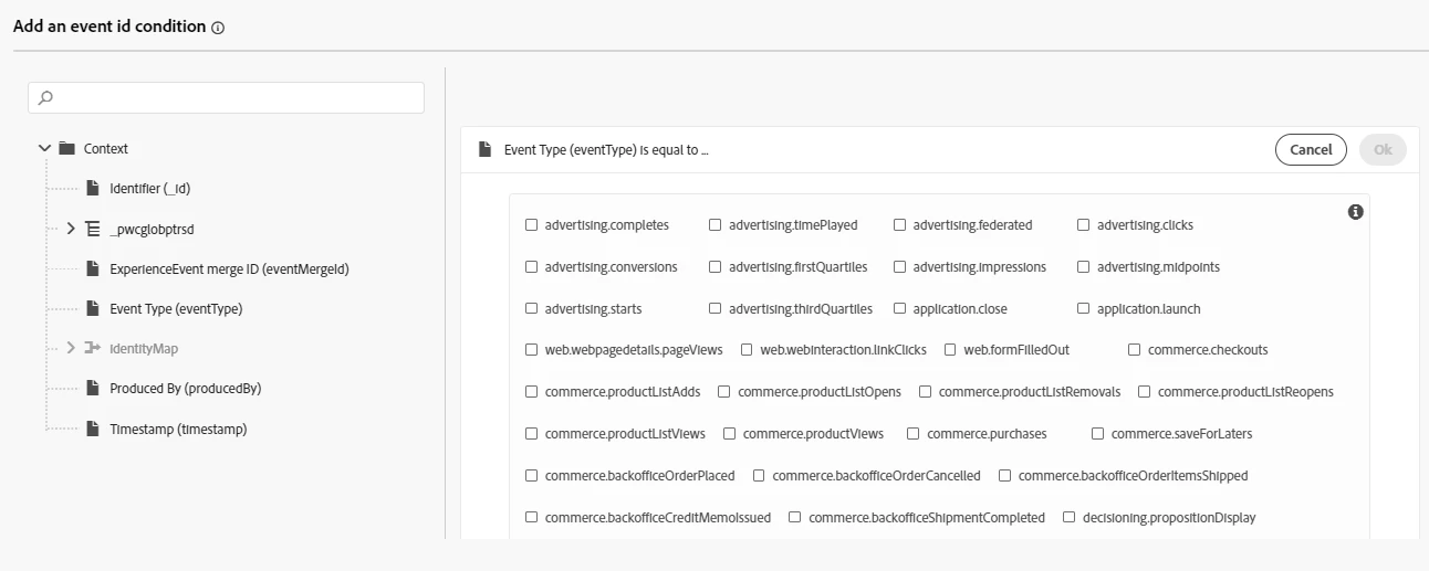 If so, try creating a new event and see if it shows up. As an alternative, you can use advanced mode to perform the comparison check by keying in the custom event type value