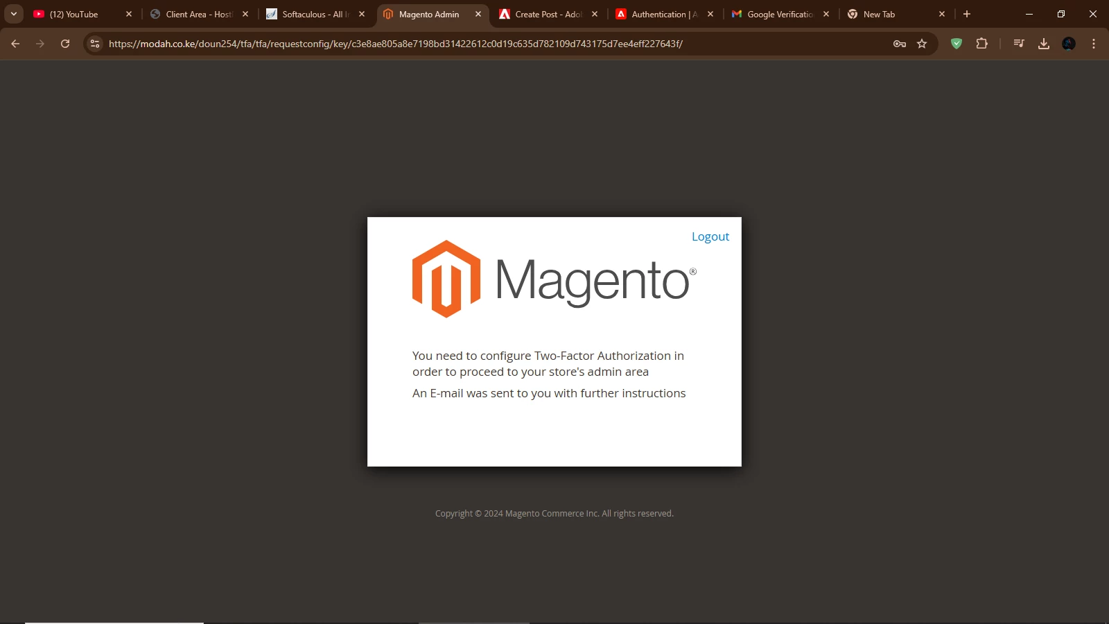 I have just installed magento for the first time in my cpanel using softaculas app installer but when i try to log in my back end to customize my webside this is the massage i am getting,"You need to configure Two-Factor Authorization in order to proceed to your store's admin area