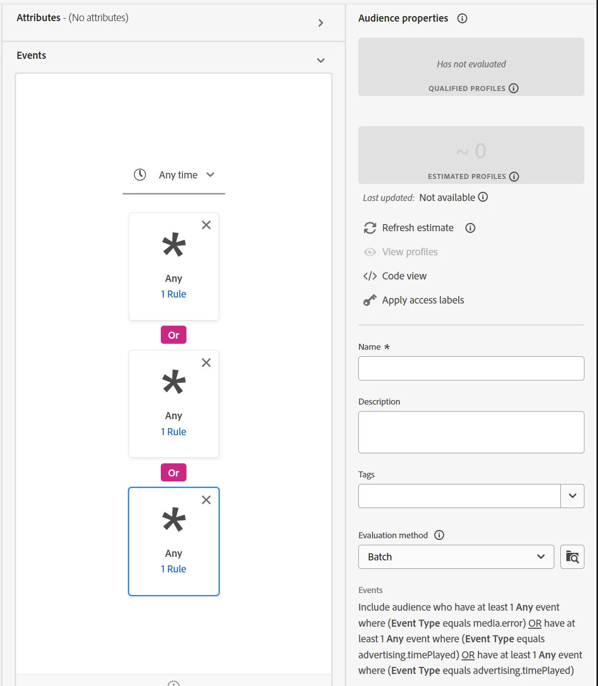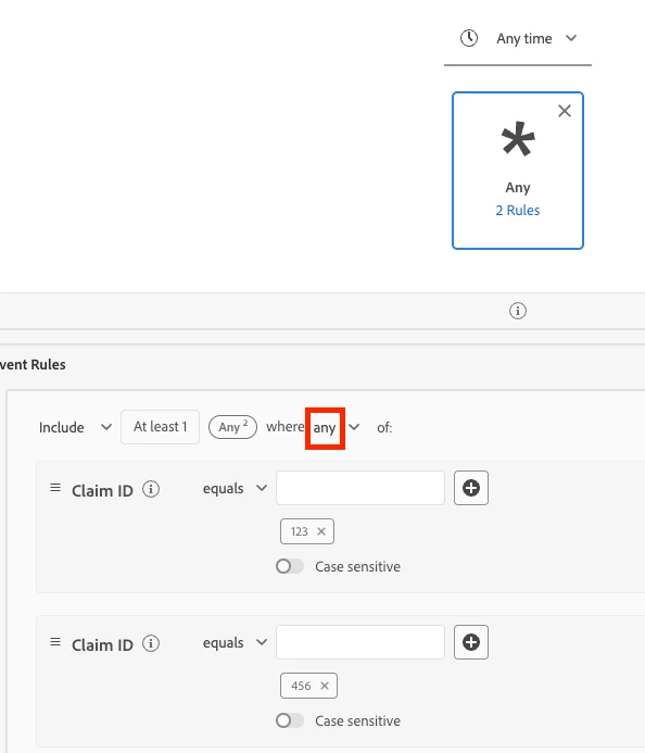 AEP audience based on two values of the same event attribute