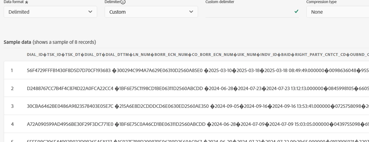 Does anyone know the list of supported delimiters that Adobe Experience Platform recognizes? My team is trying to ingest a CSV file with broken pipe delimiters; however, the file selection doesn't have broken pipe delimiter as an option. Does anyone know if AEP can ingest a file with a broken pipe delimiter and how? If not, where can I find a list of supported delimiters?