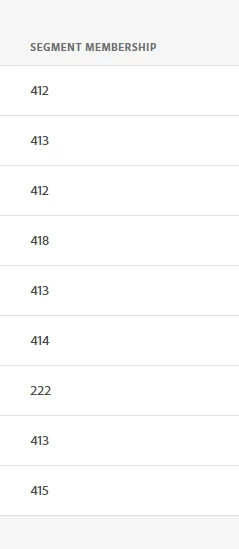 As for the numbers you are seeing for segmentMembership, that looks different than what i'm used to seeing. Can you potentially go into one of those profiles and give an example? Hiding any PII, of course.