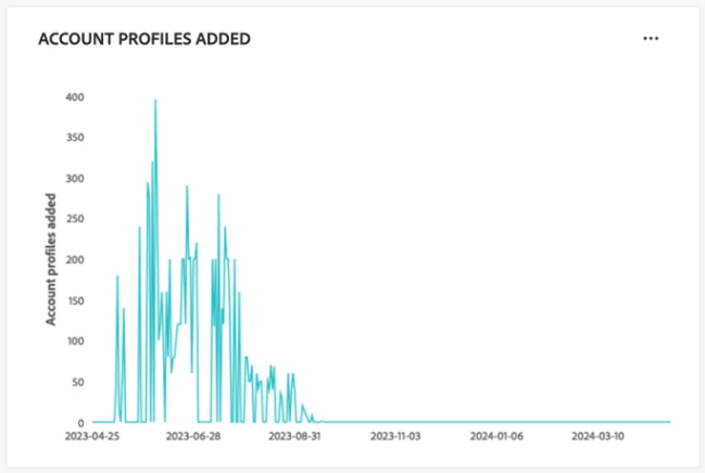 - Account profiles added: Ever noticed spikes in your account profile additions? This widget helps you track these trends, showing you the impact of your recent campaigns or outreach efforts. It’s like having a direct line to your campaign’s success rate.