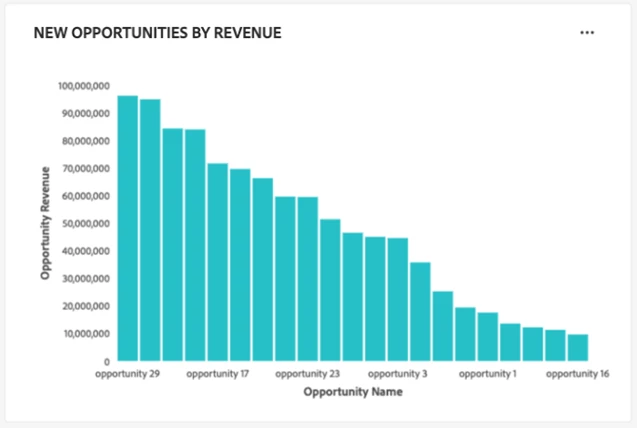 New opportunities by revenue: By visualizing the revenue potential of new opportunities, businesses can prioritize high-value opportunities and allocate resources more efficiently. This insight helps in assessing the financial impact of ongoing deals and guiding strategic focus toward opportunities that offer the greatest revenue potential.