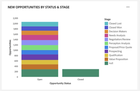 Opportunities added: Track how new opportunities are flowing into your pipeline over time. This widget helps you gauge the effectiveness of your lead generation efforts and adjust your strategies to keep that pipeline thriving.
