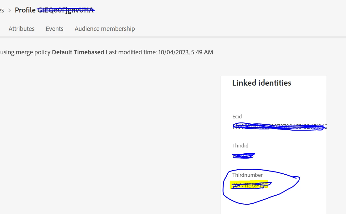 I'm able to see (THIRD_NR) new attribute in identity stitching but not showing under the attributes tab of profile. In segmentation also, profiles are not getting considered under THIRD_NR attribute exist.