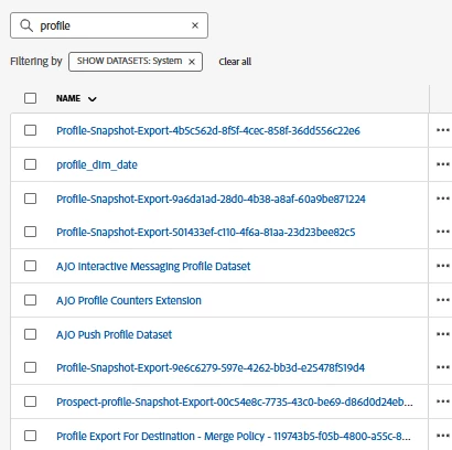To access it, navigate to the list of datasets in AEP, where you'll find the profile snapshot.