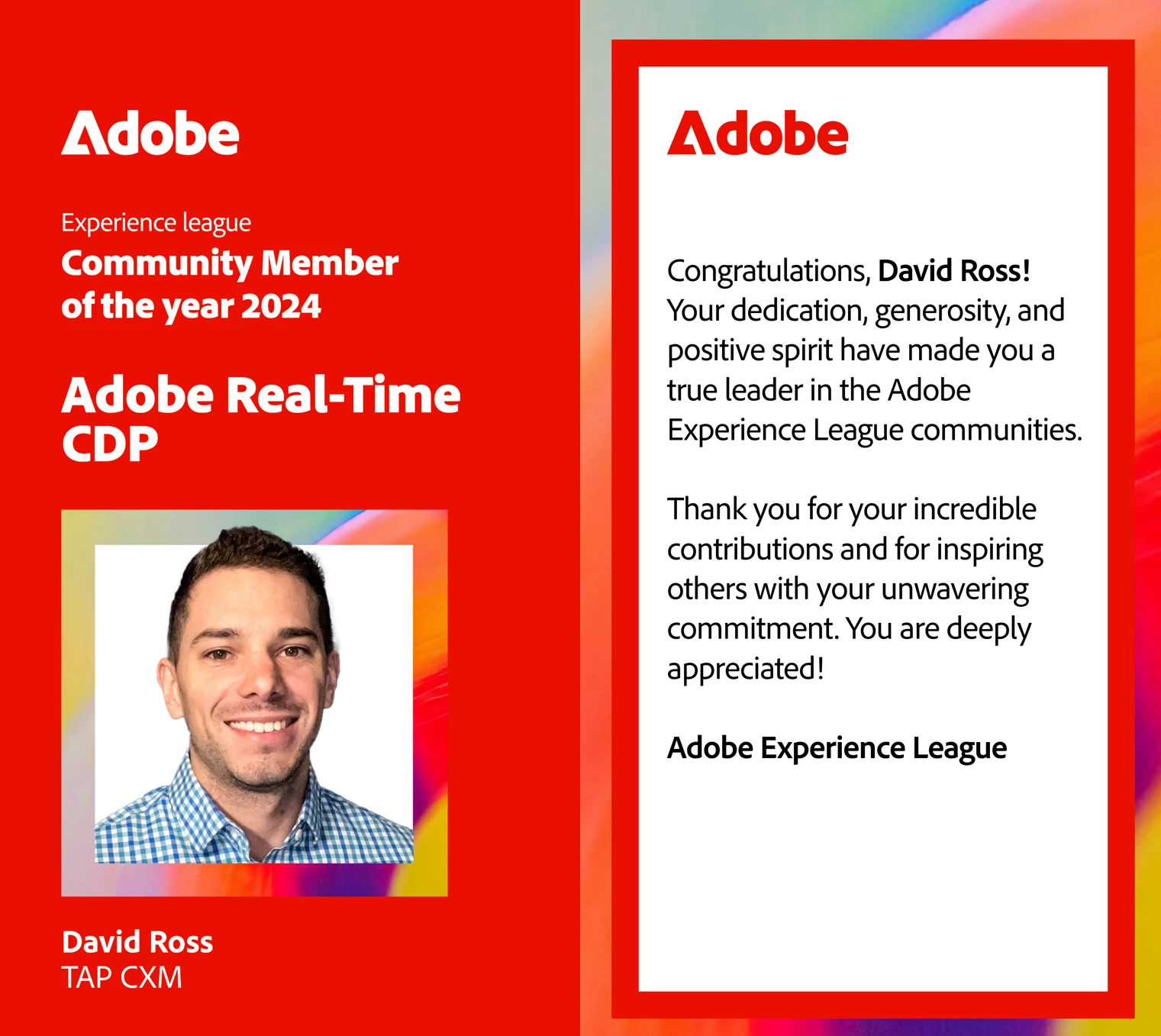 David has shown exceptional commitment to the RTCDP Community, helping others with his expertise, fostering discussions, and sharing valuable feedback. His contributions have greatly enriched the community and inspired others to get involved. Your work has significantly impacted countless learners, empowering them to grow in their understanding of our products. Thanks to your efforts, new members are not only learning faster but also feel encouraged to participate more actively.