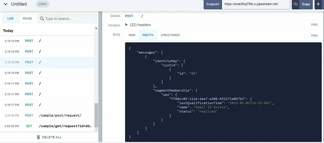 One of the most used destinations within RT-CDP is the streaming HTTP API destination. There are multiple queries that are posted on the experience league community on the payload etc of this endpoint. Today, as the first tip, we are going to cover how you can use a public webhook like a requestbin url to test out the payload.