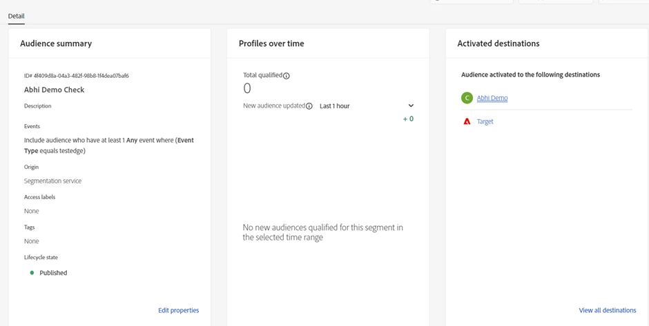 If you notice, the first segment id in the above screenshot aligns with the segment id in step 3 above where we created the segment (audience) initially.