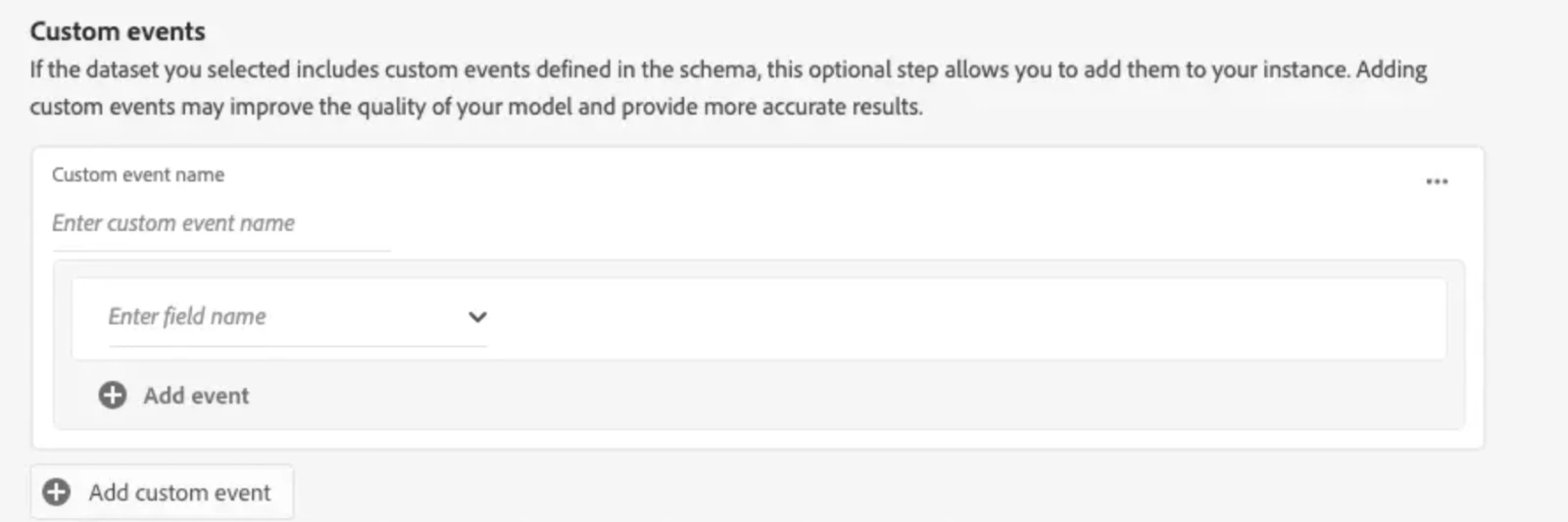 You can also specify events to be used as input if you do not use the standard experience event schema for any of your behavioral datasets.