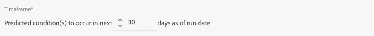 The above picture shows how you can specify prediction timeframe within Customer AI.