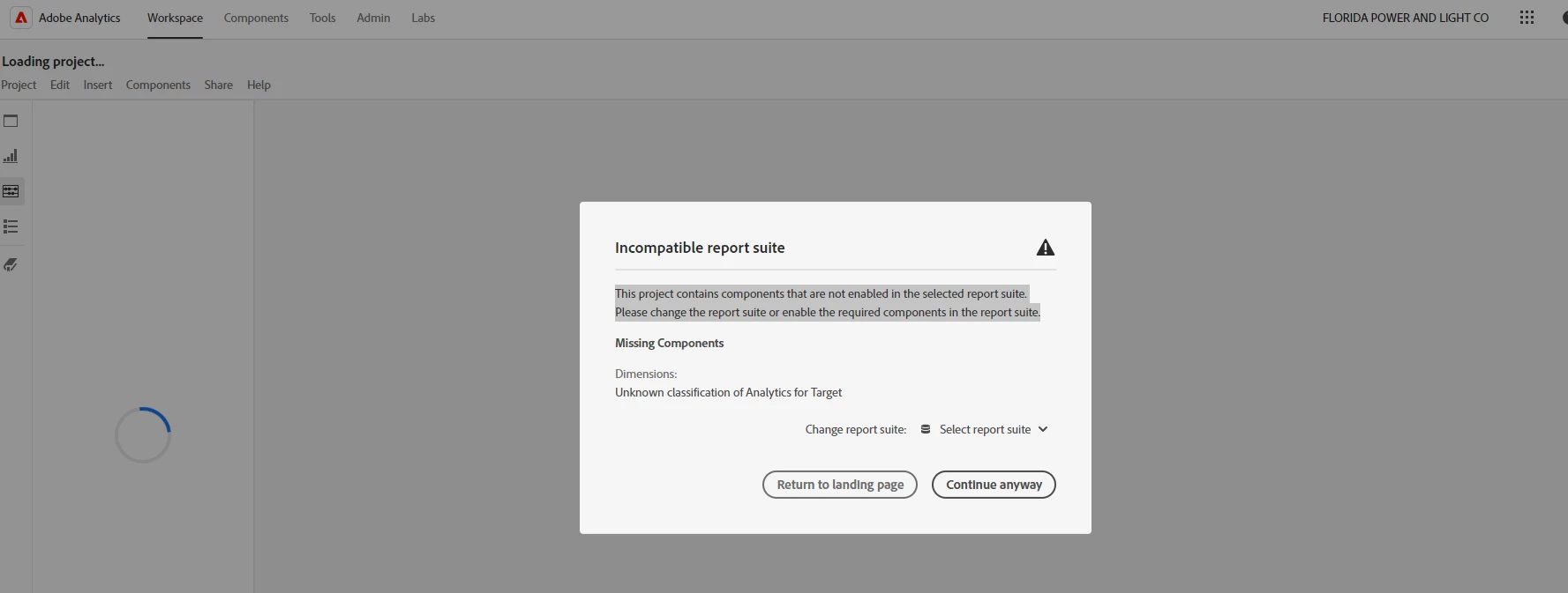 I created one activity in our workspace and used adobe analytics as a reporting source but I am facing below issue: