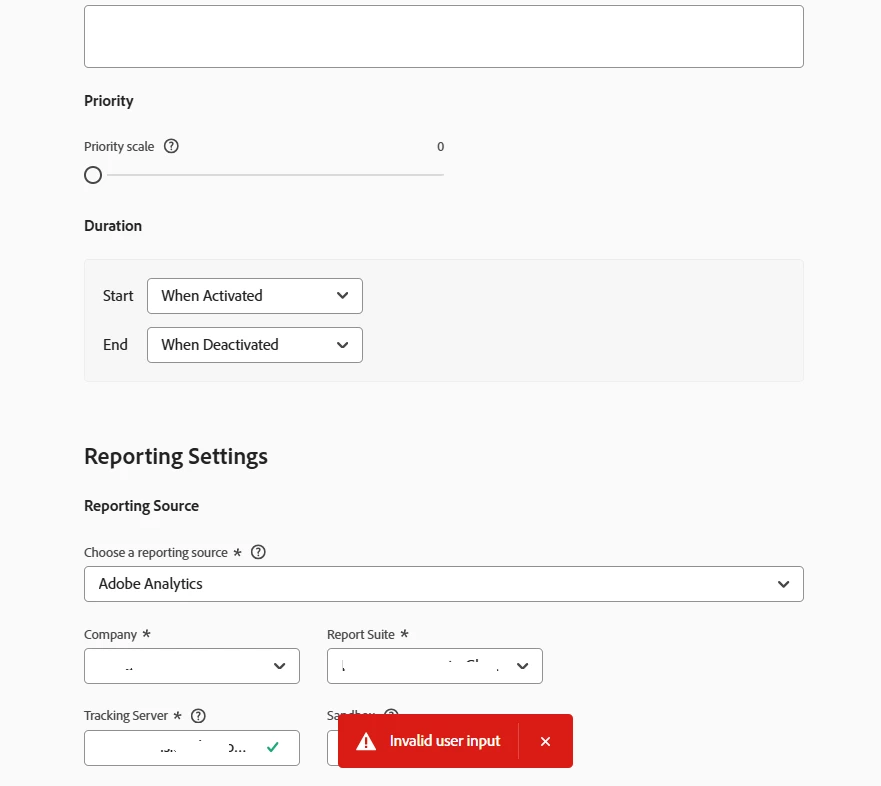 I am unable to save an existing activity after making modifications, as it throws an error "Invalid user input". This issue has been observed following the VEC updates by Adobe. The Adobe Target Standard/Premium 25.2.1 release (February 17, 2015) introduces an updated Visual Experience Composer (VEC). Please refer below screenshot: