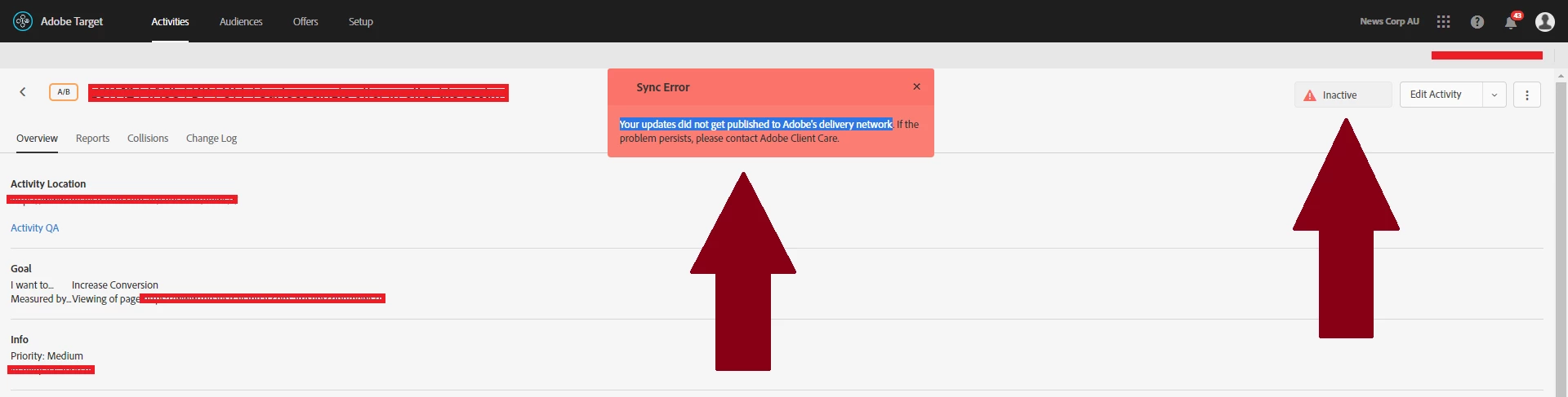 Every time i create and publish an activity in Target, i am getting this error "Your updates did not publish to Adobe's delivery network".
