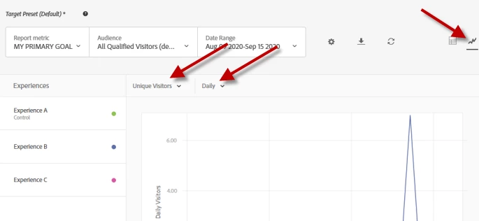 I'm reviewing the results of a recent A/B test. I've selected by date range, changed the reporting methodology to visits, and exported the resulting data to CSV. Unfortunately, I can't seem to find a method to download the data by date. Is this not possible with Adobe Target? Note that I do not use Adobe Analytics. This seems like a fairly basic functionality that I'm likely just missing. I've searched this forum and the documentation and I can't find anything about exporting the data by date.