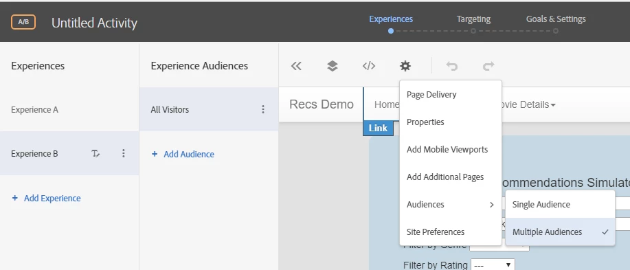 Adobe Target - 50/50 traffic split - test two experience vs their own controls