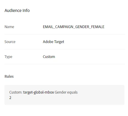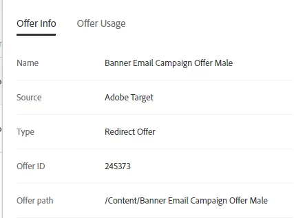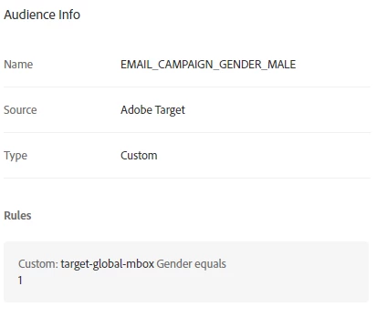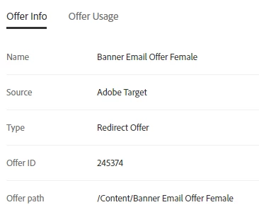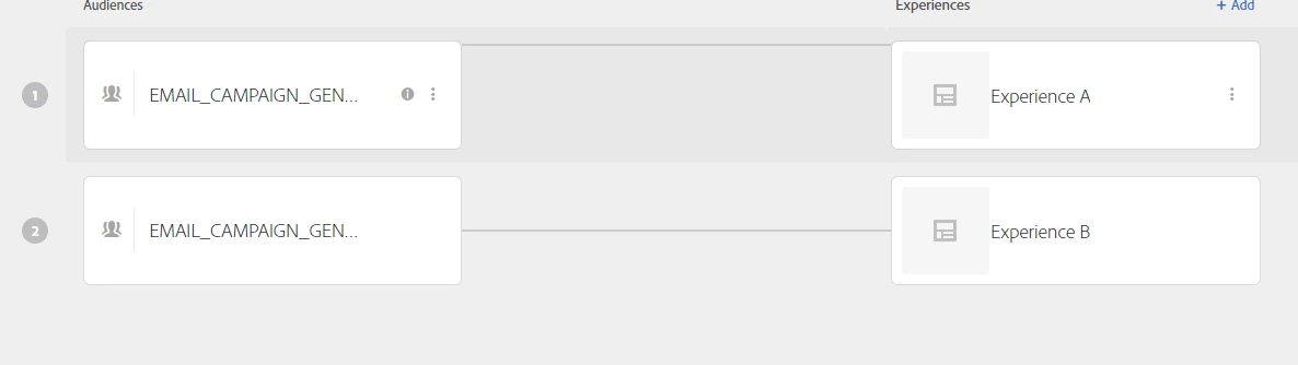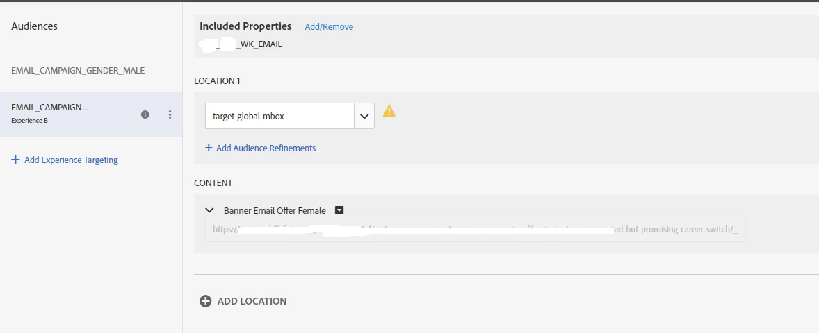 5. Created an experience targeting activity with two experiences, one for each gender with the redirect offer and global-rawbox