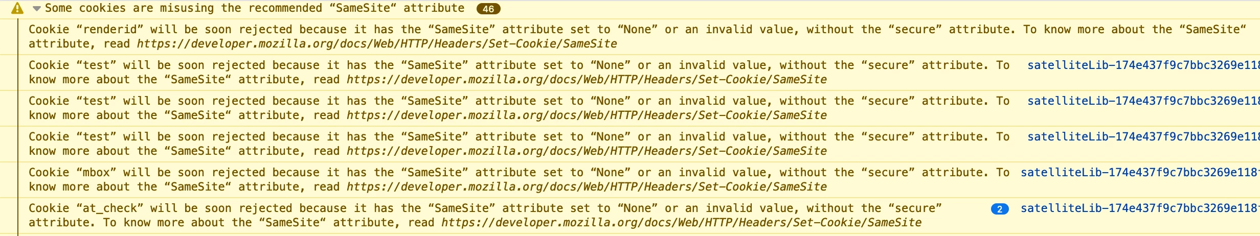 It seems that Adobe Target's cookies, e.g. "mbox" and "renderId", are being set with SameSite = "None", but the secure flag is not being set. As a result, this causes cookie security errors. How do I fix this?