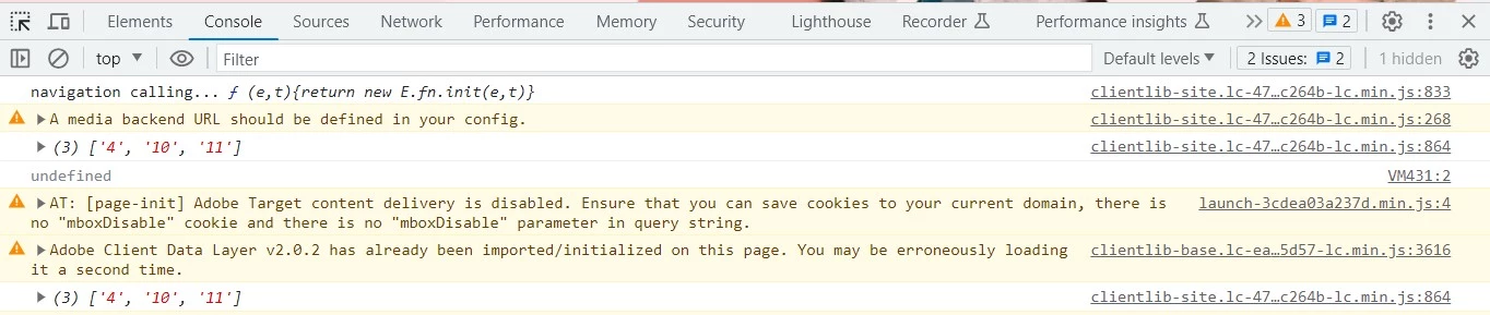 However below is the screen shot from my cloud environment where it is not getting called and I have warnings in console.