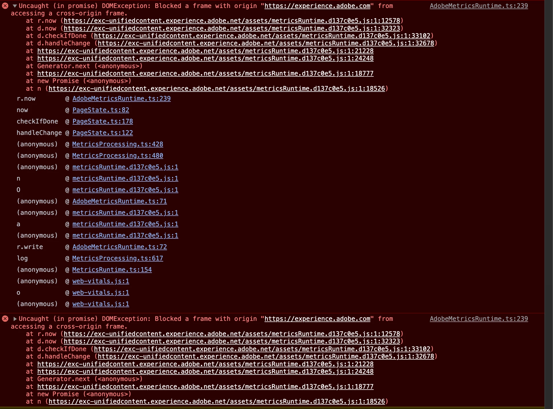 I could see error in console of Adobe target activity page. Is there any issue? It's already worked before. Please advise me.
