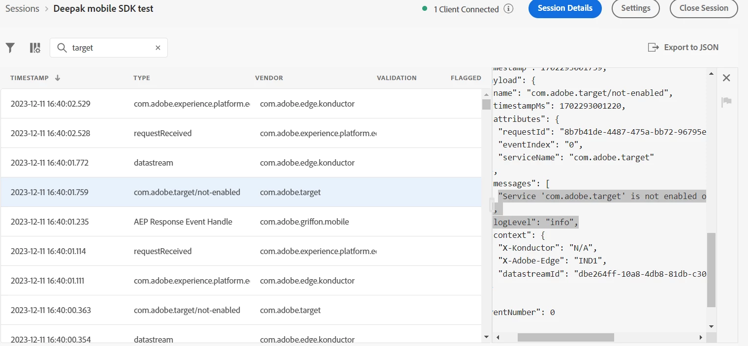 Adobe Target Error while implementing using AEP mobile SDK - 'com.adobe.target' is not enabled on current event (conditions not met). | Community