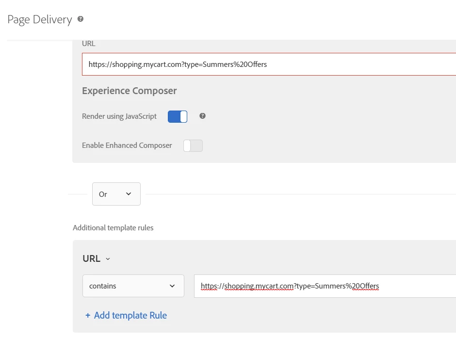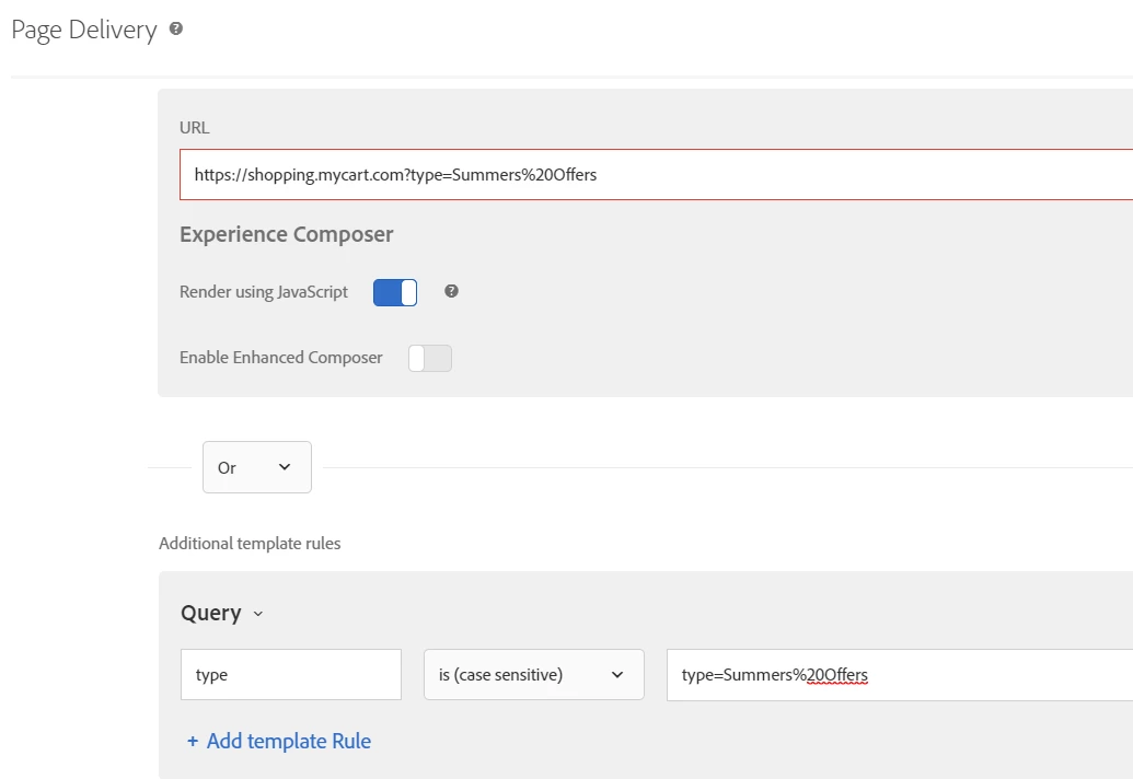 Option 3: This third option is something that Target tool provides w.r.t query parameters. Instead of targeting the complete URL, you can leverage the specific part of URL. Using the template rule with Query option eases your way to achieve the objective.