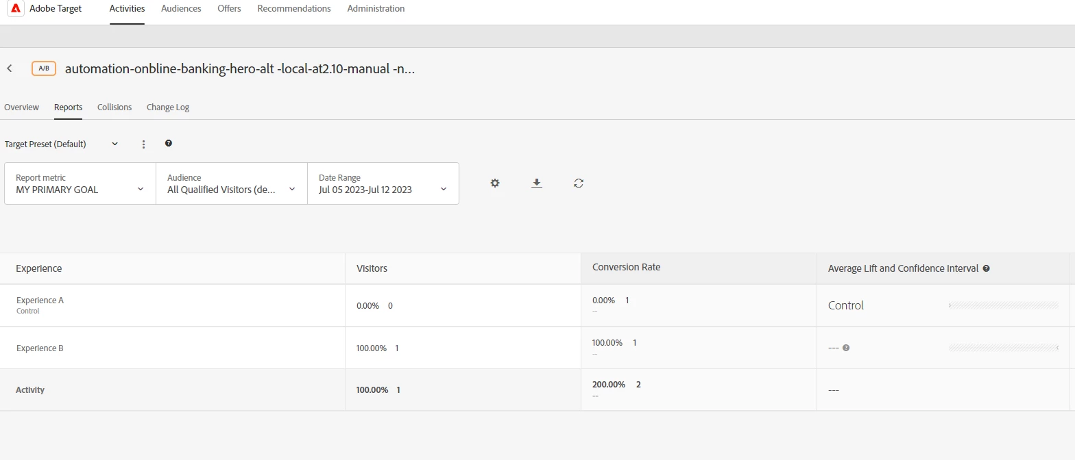 Adobe Target Report -Visitor Count