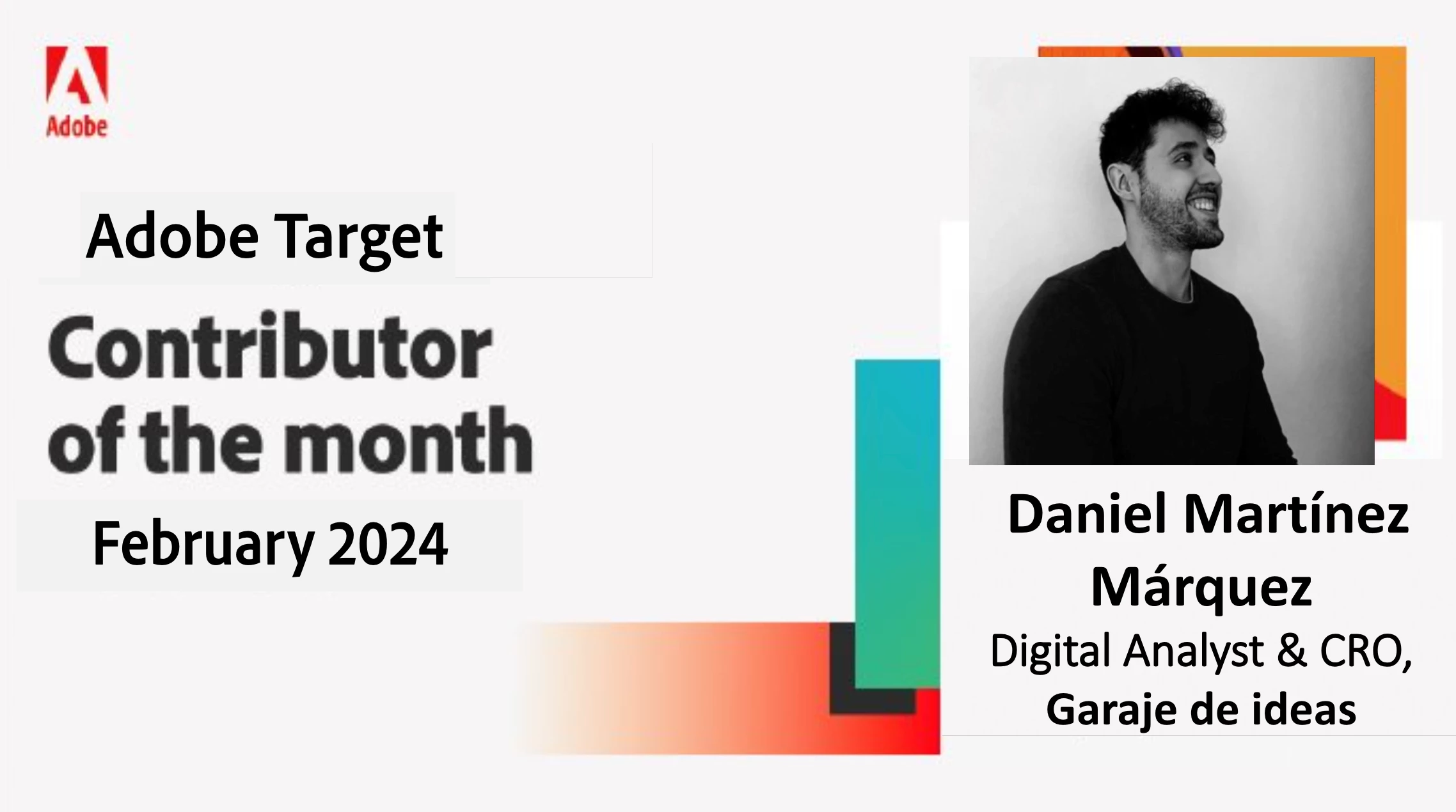Please join me in congratulating your Adobe Target practitioner peer, Daniel Martínez Márquez (aka @danielma21) for being recognized as the Adobe Target Community Contributor of the Month for February 2024!