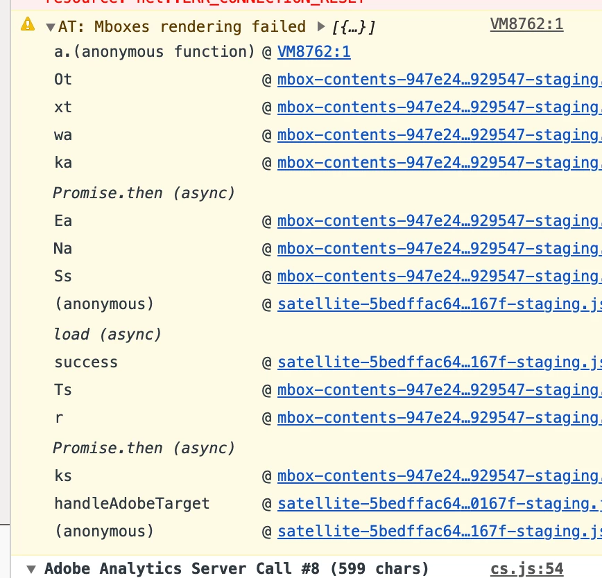 I am using a script within DTM to load AT.js 2.0. This script is working great for everything, except for non-global mboxes. The only error we're getting is the following:
