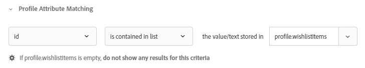 I need to add an AT Recommendation with a products included in the user's wishlist. We have the products IDs in the user profile parameter, like: