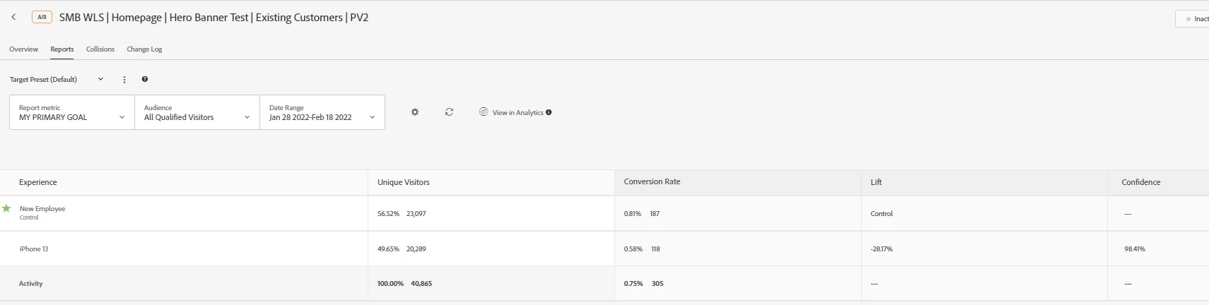 I'm running into perhaps an issue with the Auto-allocate tool and the "Winner" designation. Hoping someone can explain. We ended an A/B test that was using the auto-allocate traffic allocation feature and when looking at the results, we're seeing a Green star badge to the left of the experience name but NOT the "Winner" banner at the top of the activity. See screenshot attached. Were these results significant and do we in fact have a winner or was this test ended prematurely. Please advise!