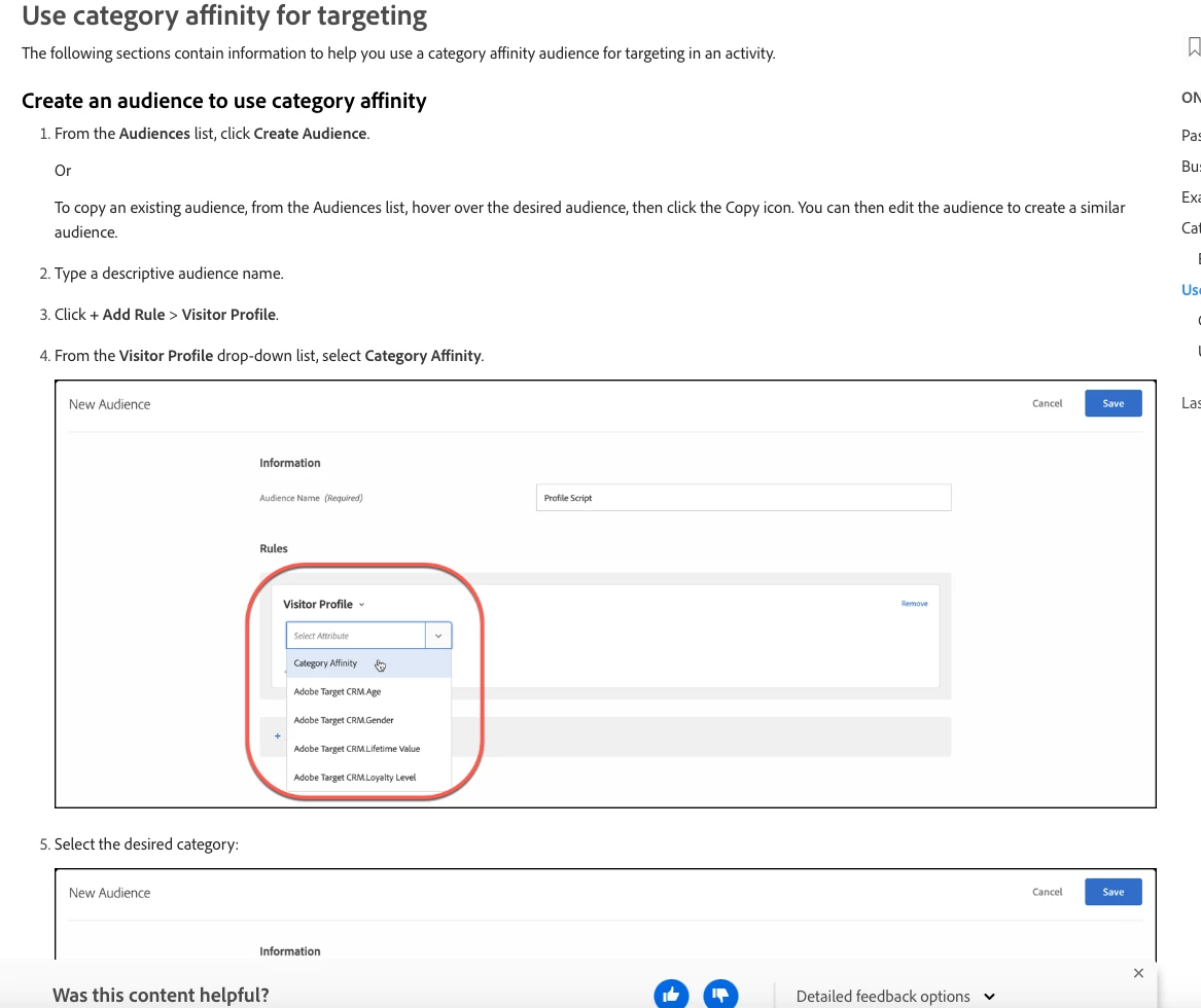 3.  I understand the category affinity algorithm and how it works.  But need to understand how to implement this user.category parameter? Also, is creating a category affinity audience enough or do I need to have user.category parameter also created and passed?