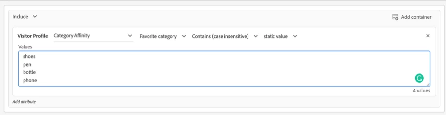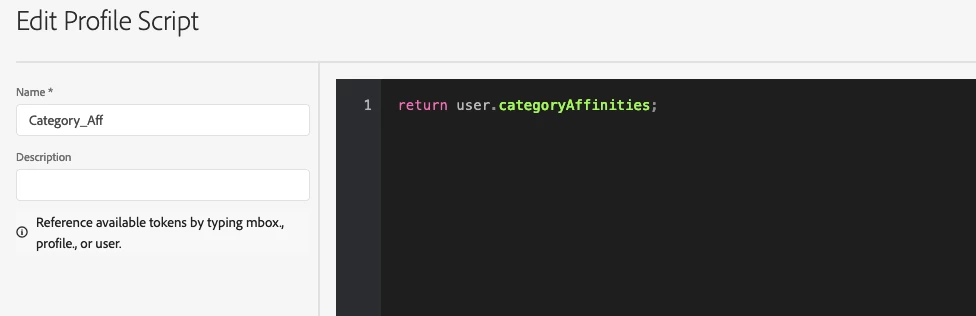 2. Then I went to Target and created a category affinity audience Additionally, I also created a profile script with category affinity like the one below which I guess will also work the same as my audience but not sure