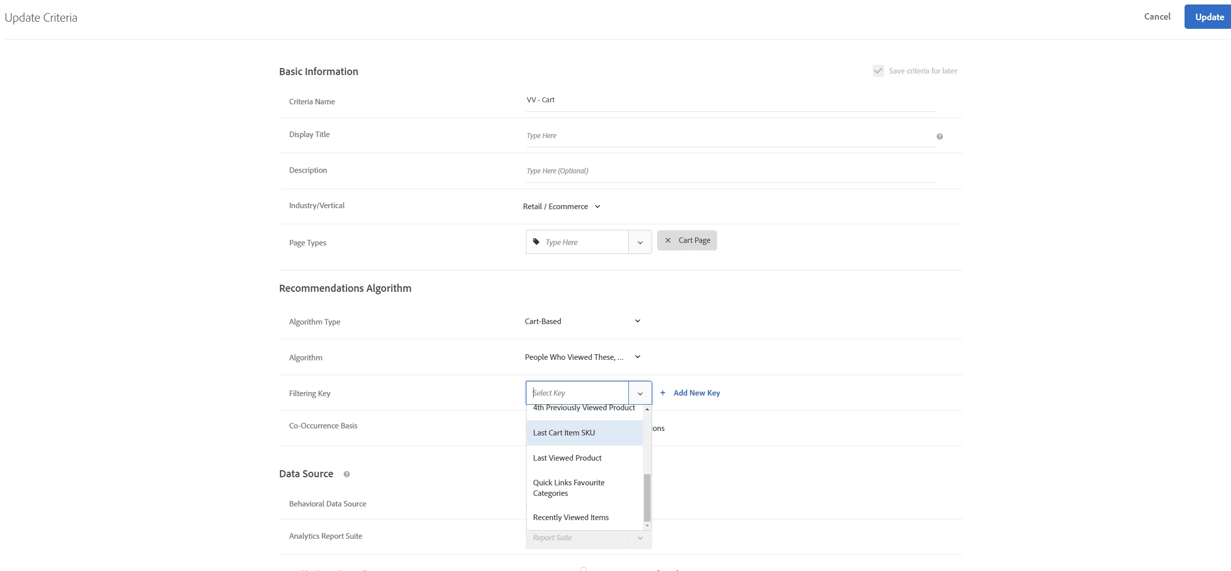 I see that there is a recommendation key called Last Cart Item SKU and it's correctly returning products based on the last item in my cart