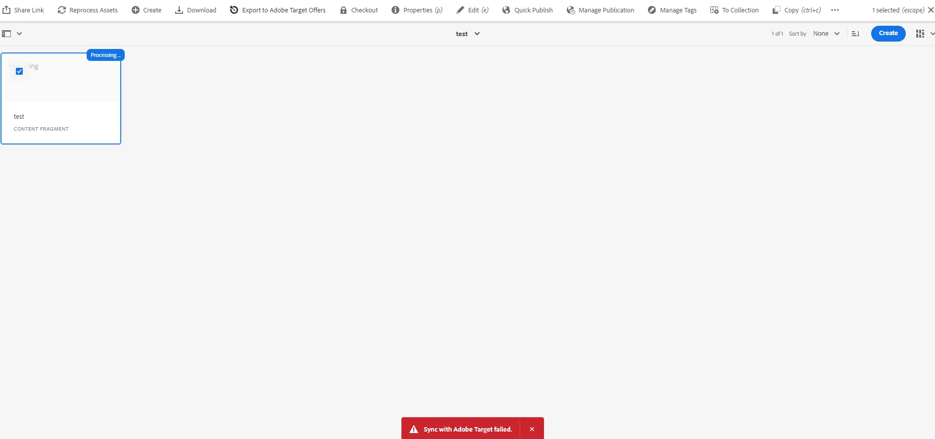 Content Fragment Sync With adobe Target is Failed