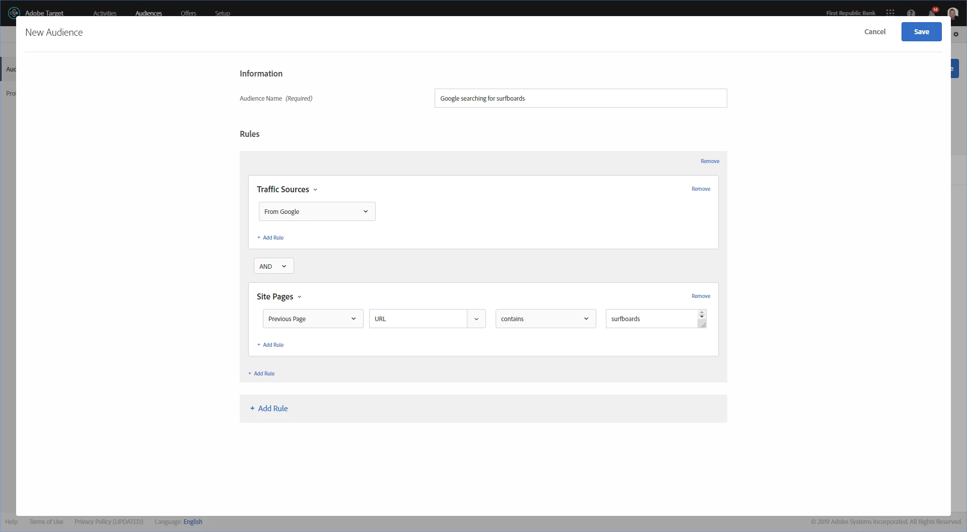 An example could be that the user searches on Google for surfboards and clicks on an ad leading to our site. Once the user reaches our site, we show content related to surfing. Can we create an audience based on the search term used to enter the site?